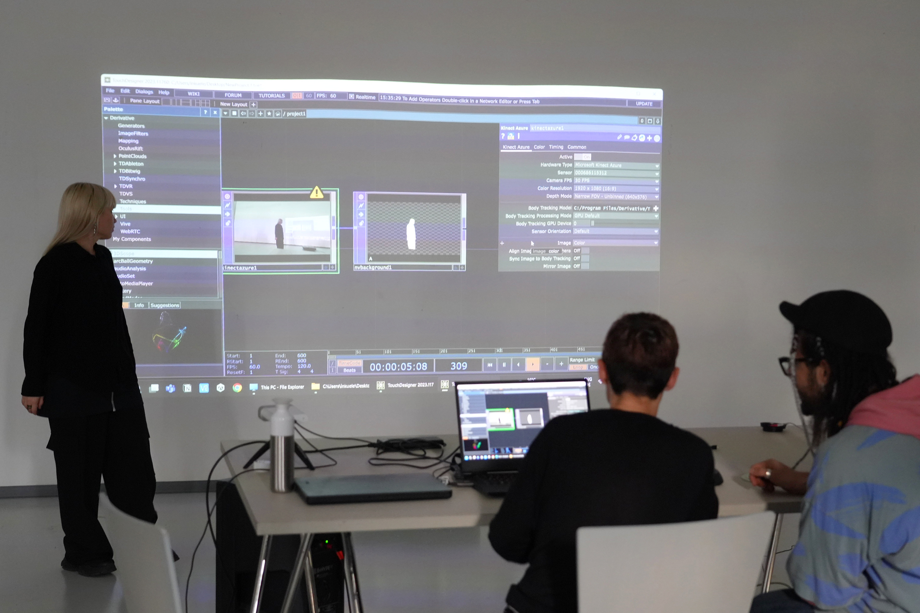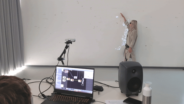 Focusing on the Azure Kinect motion-capture system and the node-based programming environment TouchDesigner, the workshop explored how gestures and bodily movement could generate interactive audiovisual experiences. Participants learned to capture skeletal motion data, translate it into dynamic signals, and manipulate these signals to control sound, visuals, and other digital outputs. Through this process, the body itself became a creative interface, revealing how movement can shape artistic expression in digital contexts.