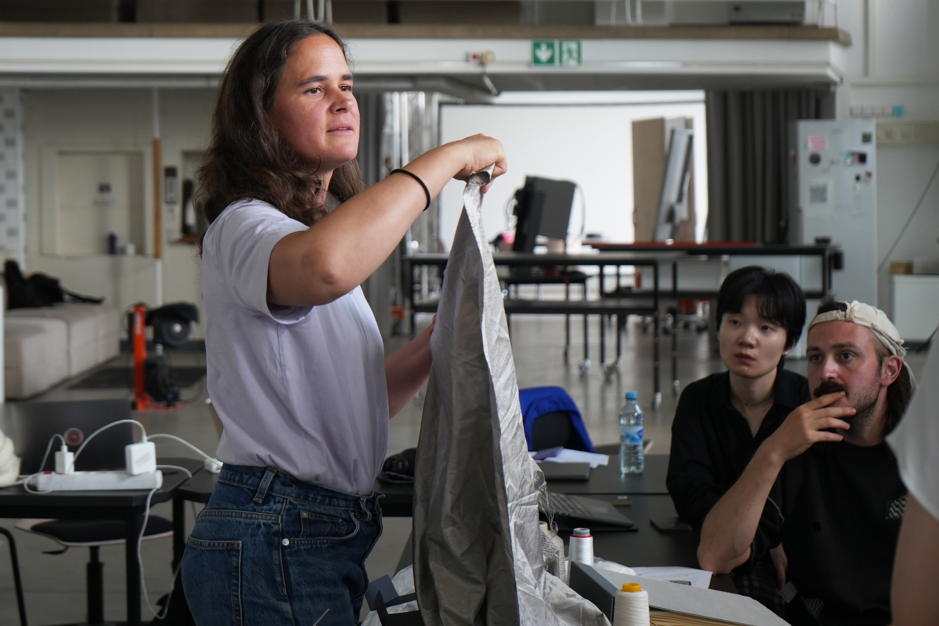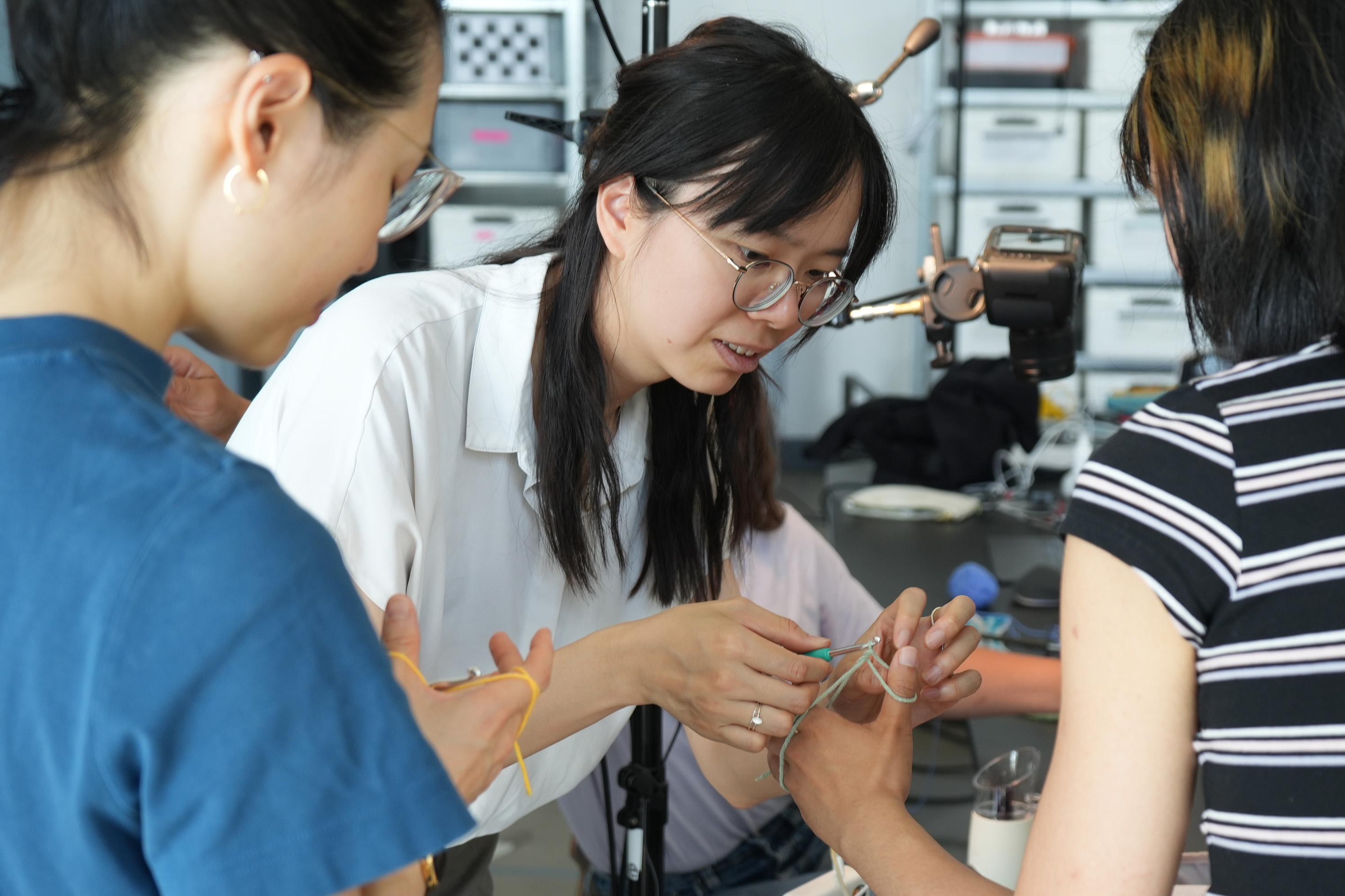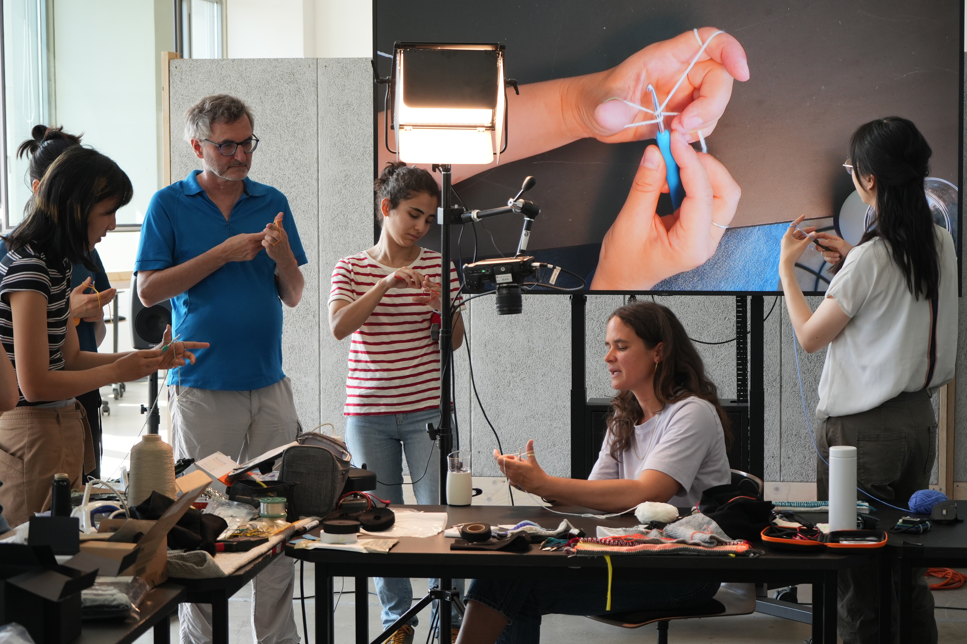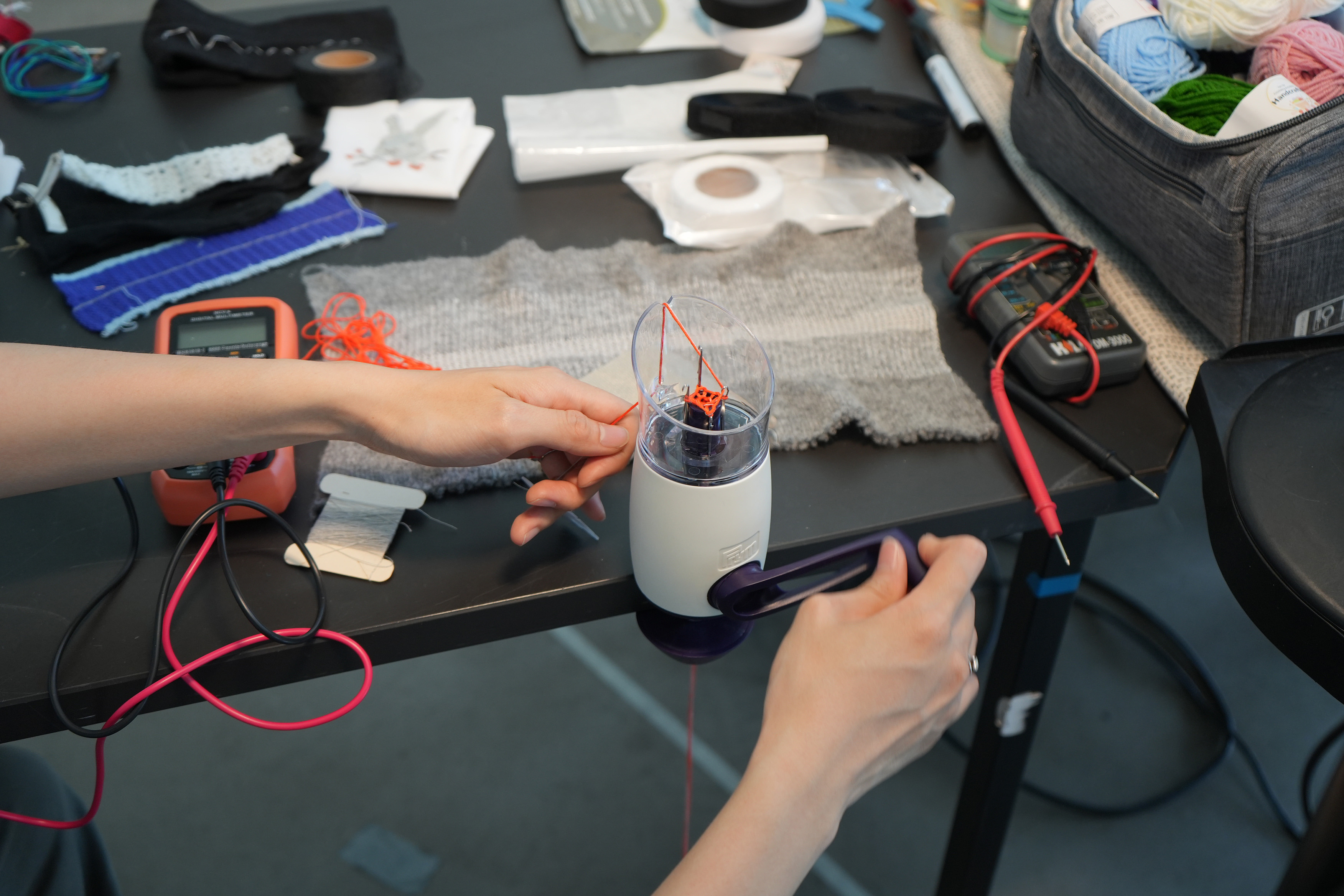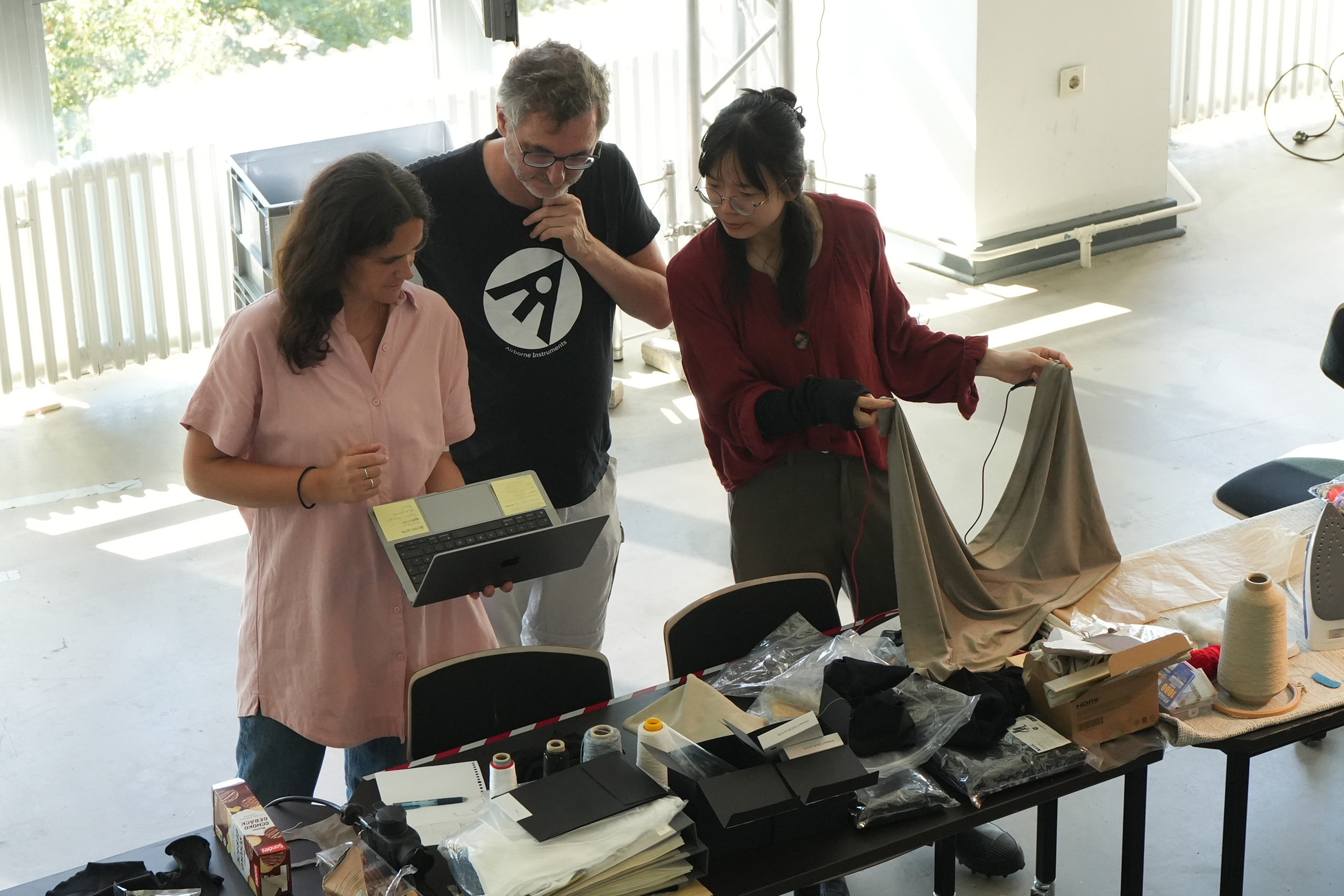 The workshop Elastic Electronic: Soft Sensors, hosted by Fang Tsai at the Design & Computation Studio of the Technical University of Berlin for student from Berlin University of the Arts, offered a hands-on exploration of the intersections between textiles, electronics, and sound. Designed as a transdisciplinary experience, it brought together students from visual communication, dance, product design, sound studies, and fine arts, encouraging collaboration across creative and technical fields.