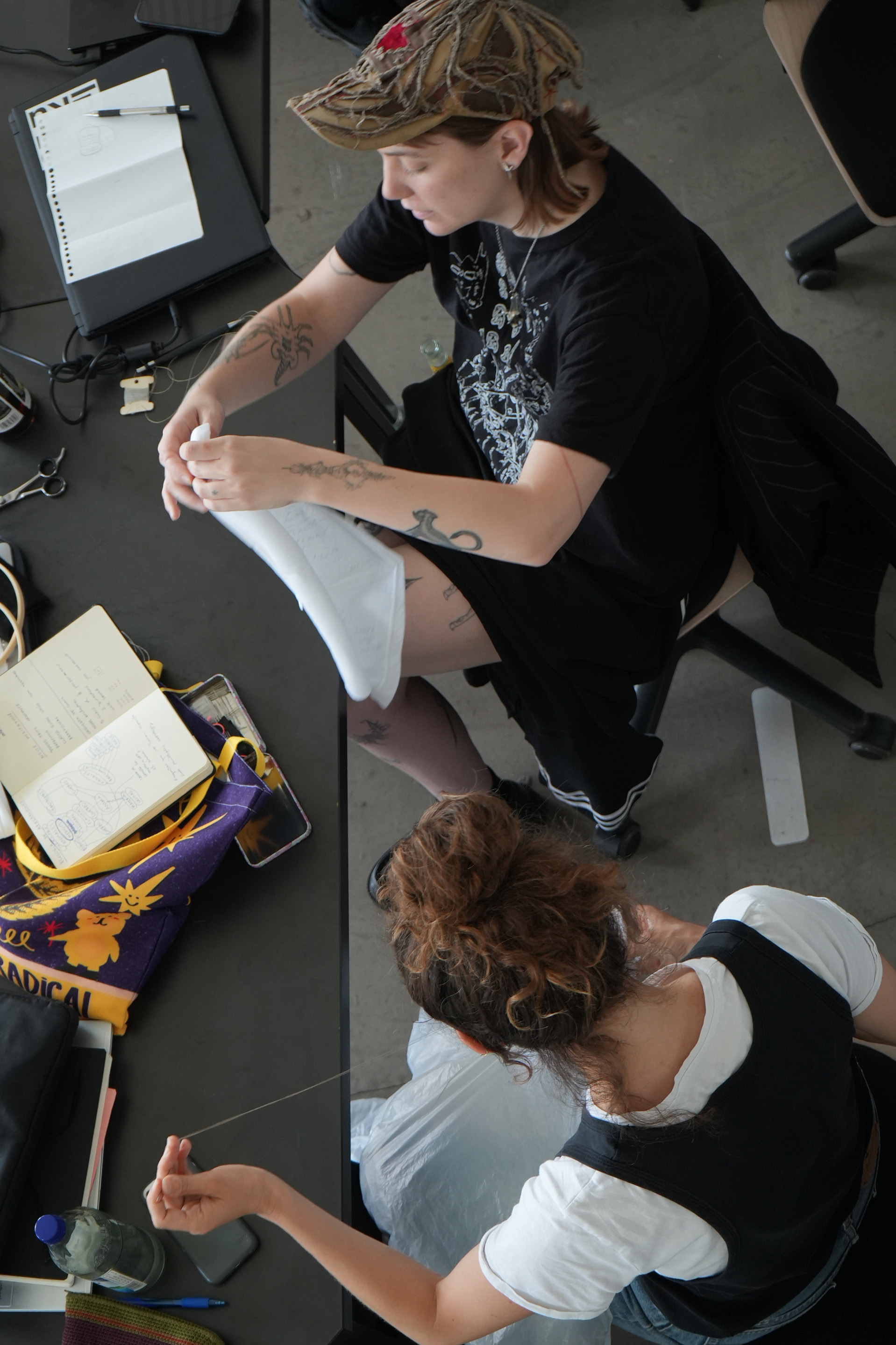 The workshop emphasized experimentation over technical precision, transforming the studio into a space of improvisation, where gestures, materials, and sound converged into performative and creative experiences.