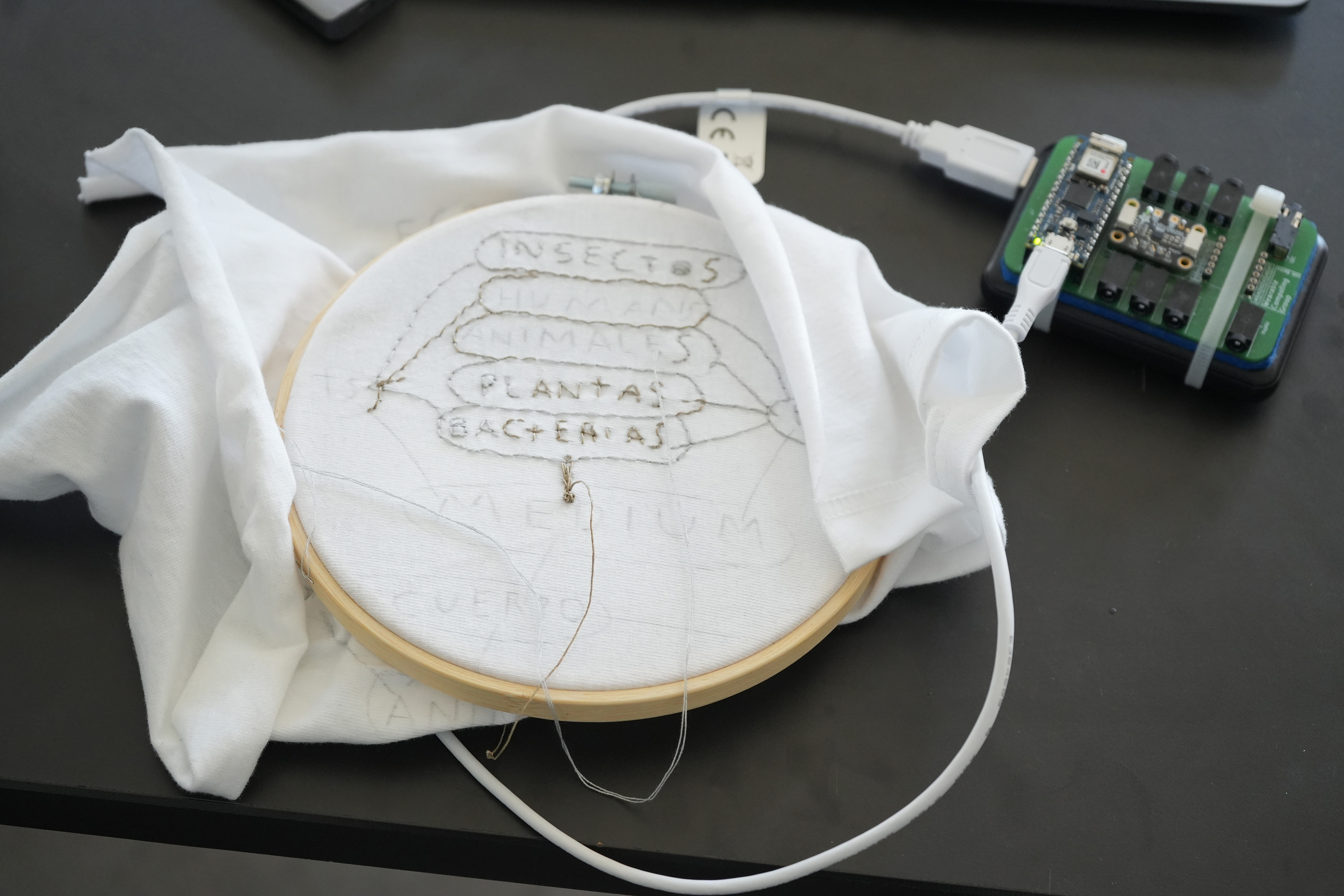 Participants then experimented with conductive threads, yarns, and fabrics, learning how tactile interactions and stretching could alter the electrical resistance of textile materials. These changes were measured and visualized in real time, giving tangible insight into the relationship between physical gestures and electronic signals.