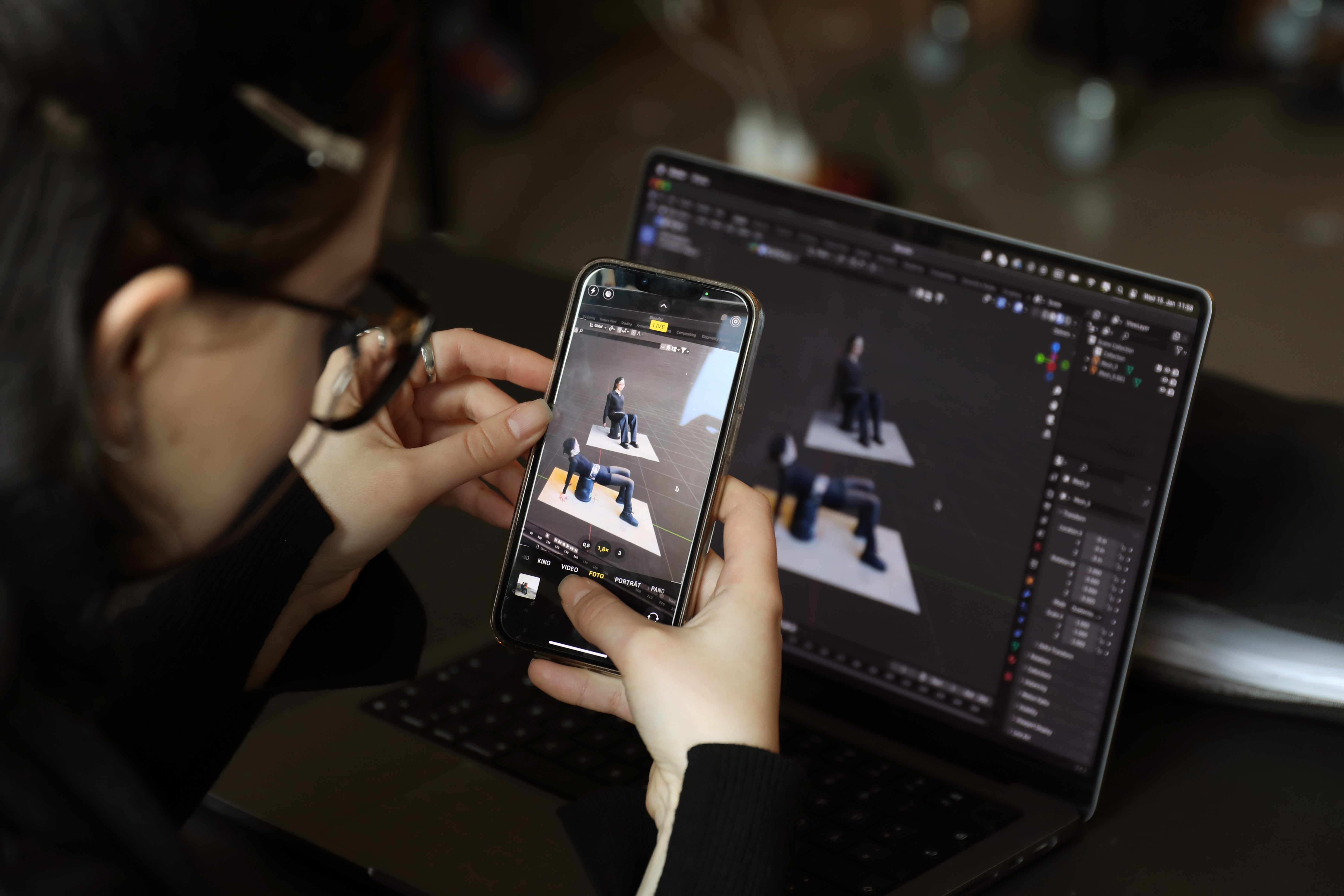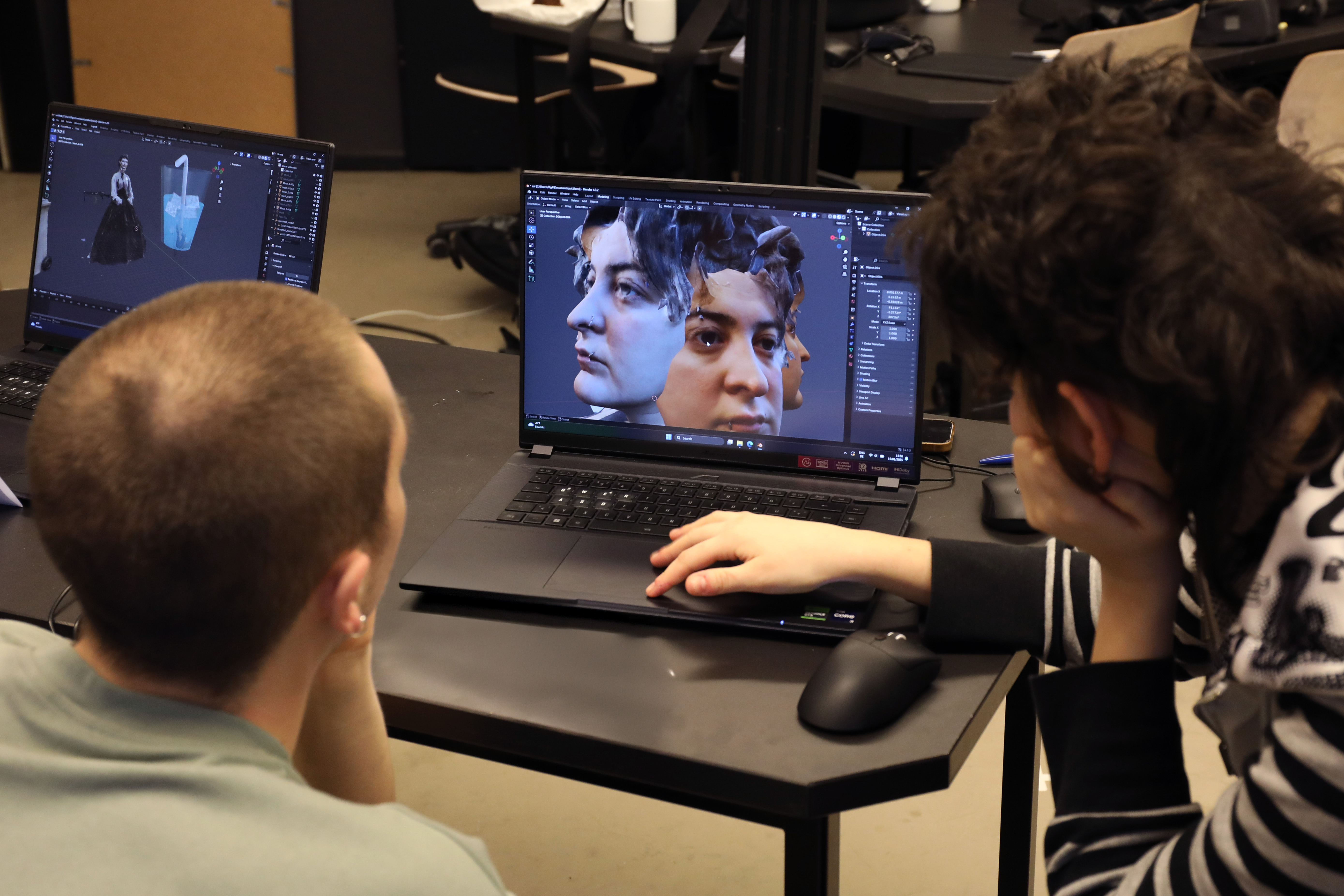 Im/materialities Workshop I: Objectify Your Body, led by Manuel Sinn with support from Fang Tsai. Students used 3D scanning and modeling to merge body parts with everyday objects, generating hybrid sculptures that encouraged reflection on technological objectification and social implications of body representation in digital spaces.
