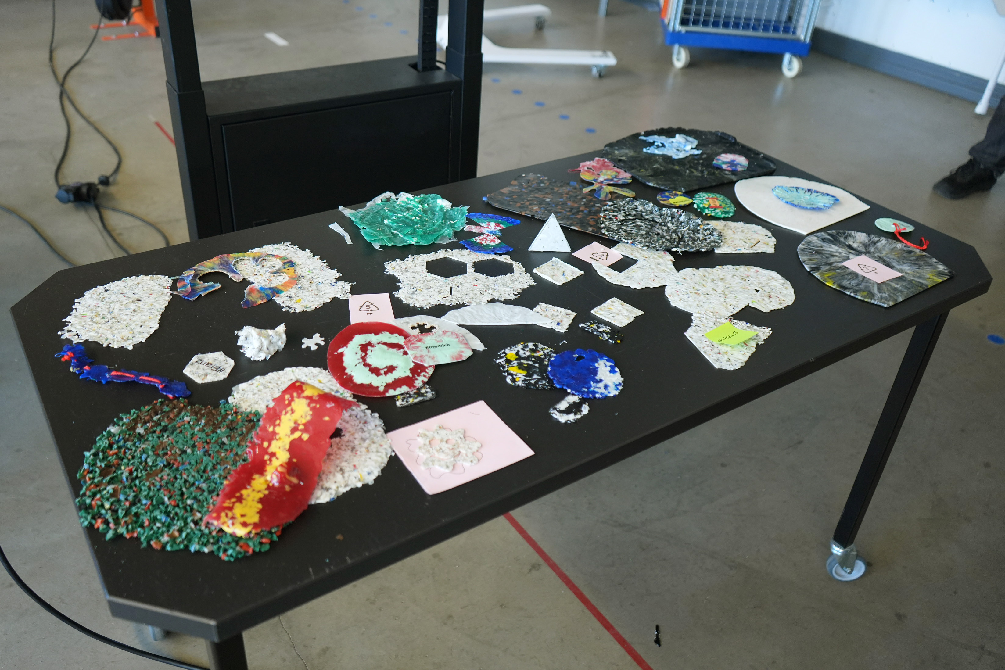 Im/materialities Workshop II: Reshaping Plastics – Workshop, Lab, Experiment, led by Aron Petau with guidance from Franz Siebler, engaged participants in material experimentation with plastics, combining recycling, shaping, and CNC techniques to explore ecological, aesthetic, and technical dimensions of materials.