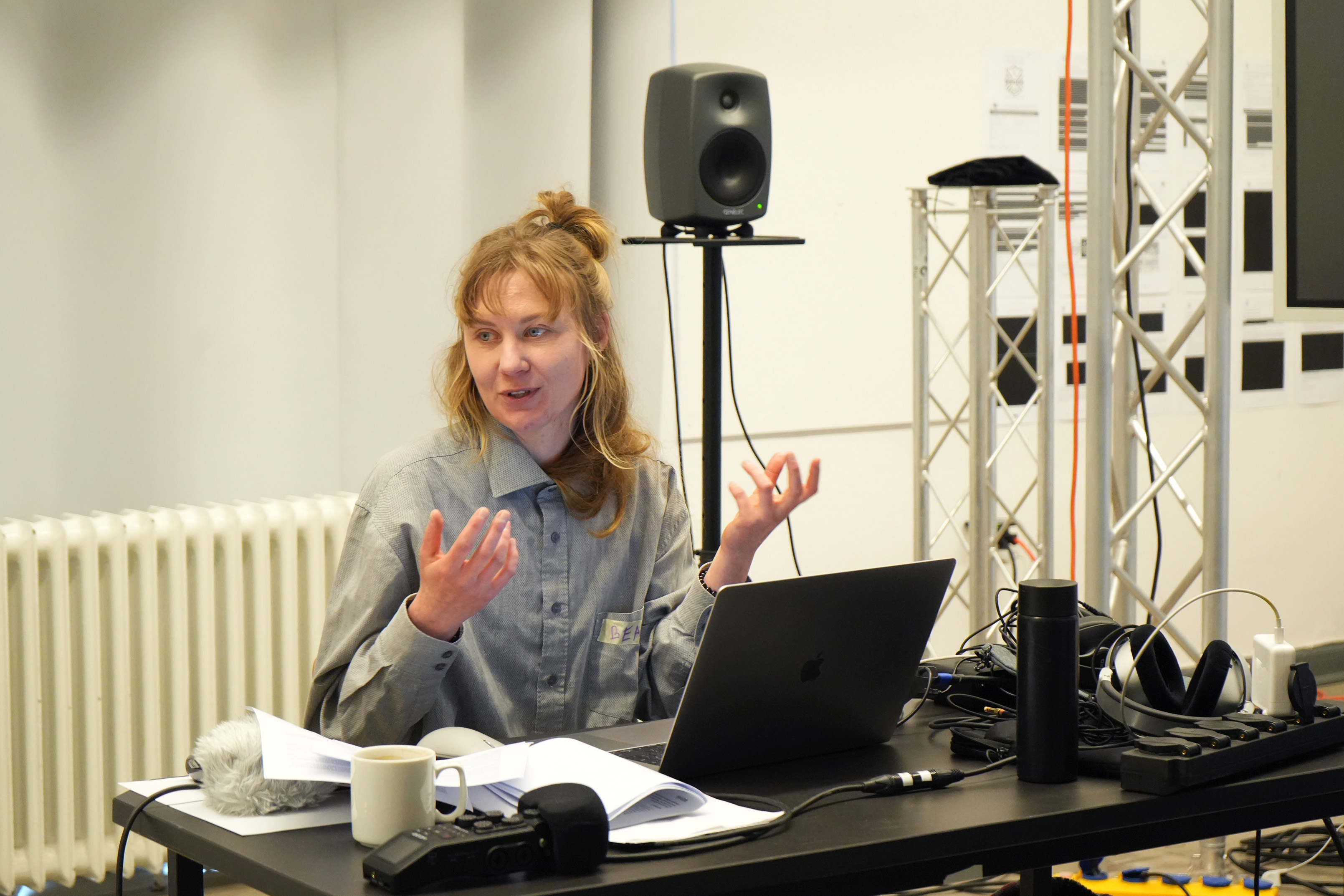 Im/materialities Workshop III: Shared Listening – Auditory Exploration, conducted by Bea Targosz with support from Anastasia Putsykina, invited participants to explore sound as material. Through field recording, immersive listening, and digital manipulation, students reflected on the ways sound can be captured, transformed, and recontextualized, linking sensory perception, technology, and environment.