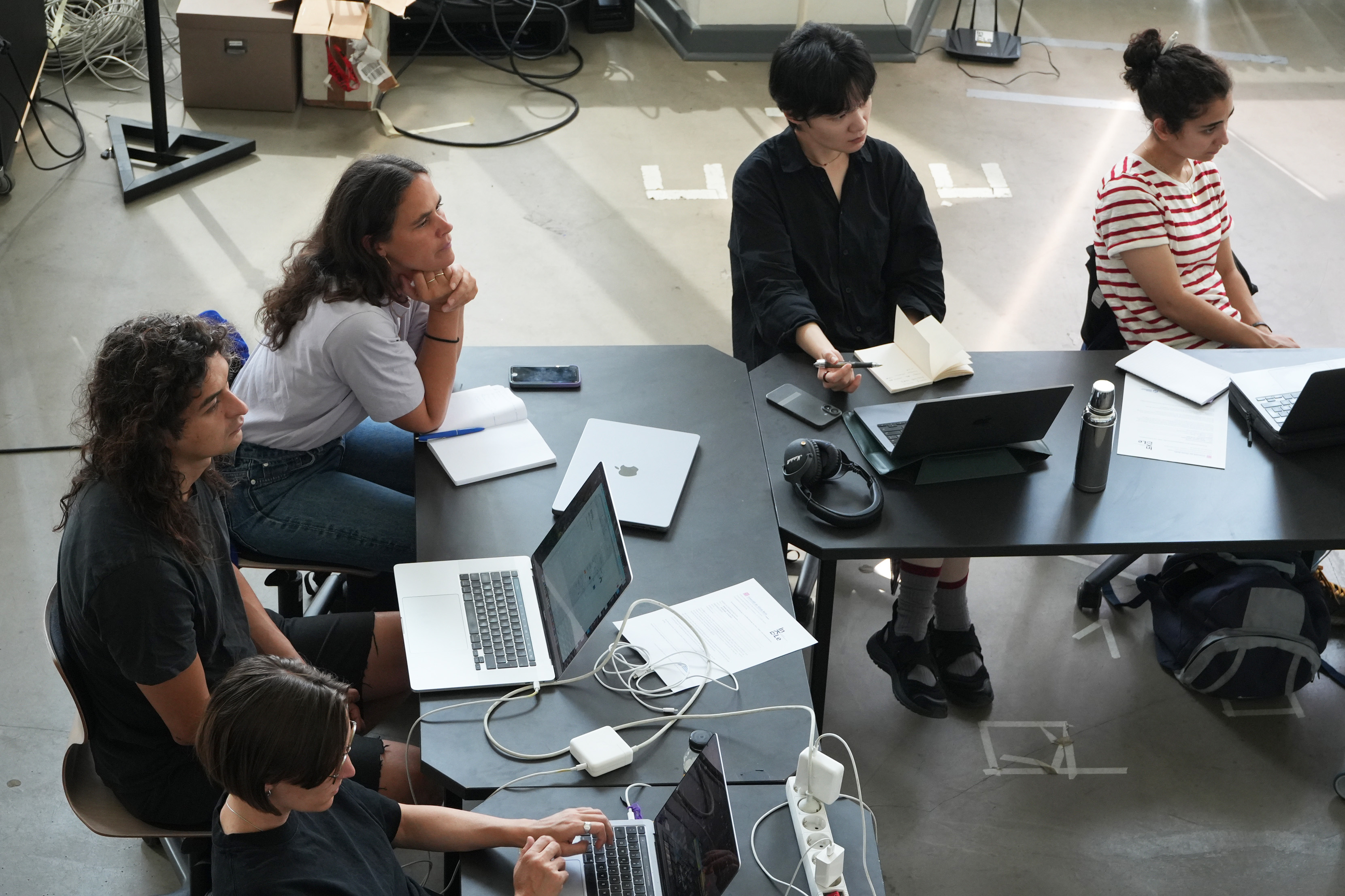 The workshop emphasized experimentation over technical precision, transforming the studio into a space of improvisation, where gestures, materials, and sound converged into performative and creative experiences.