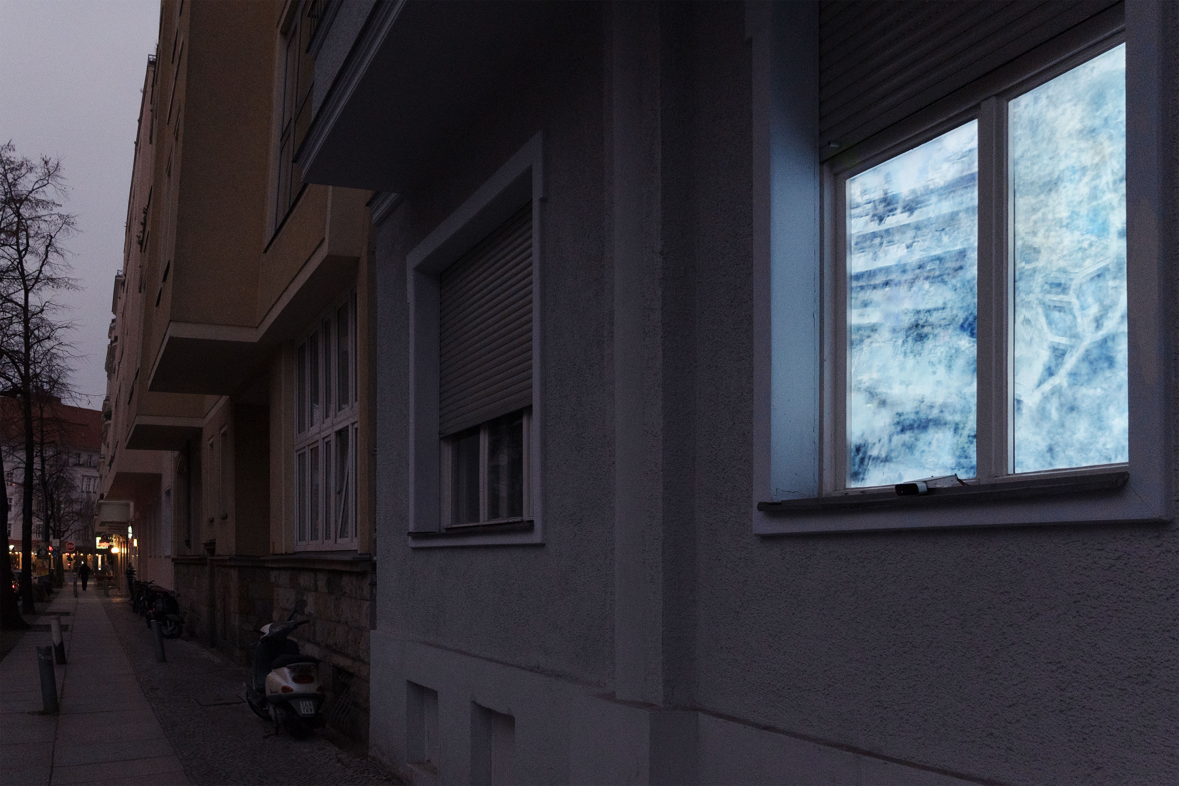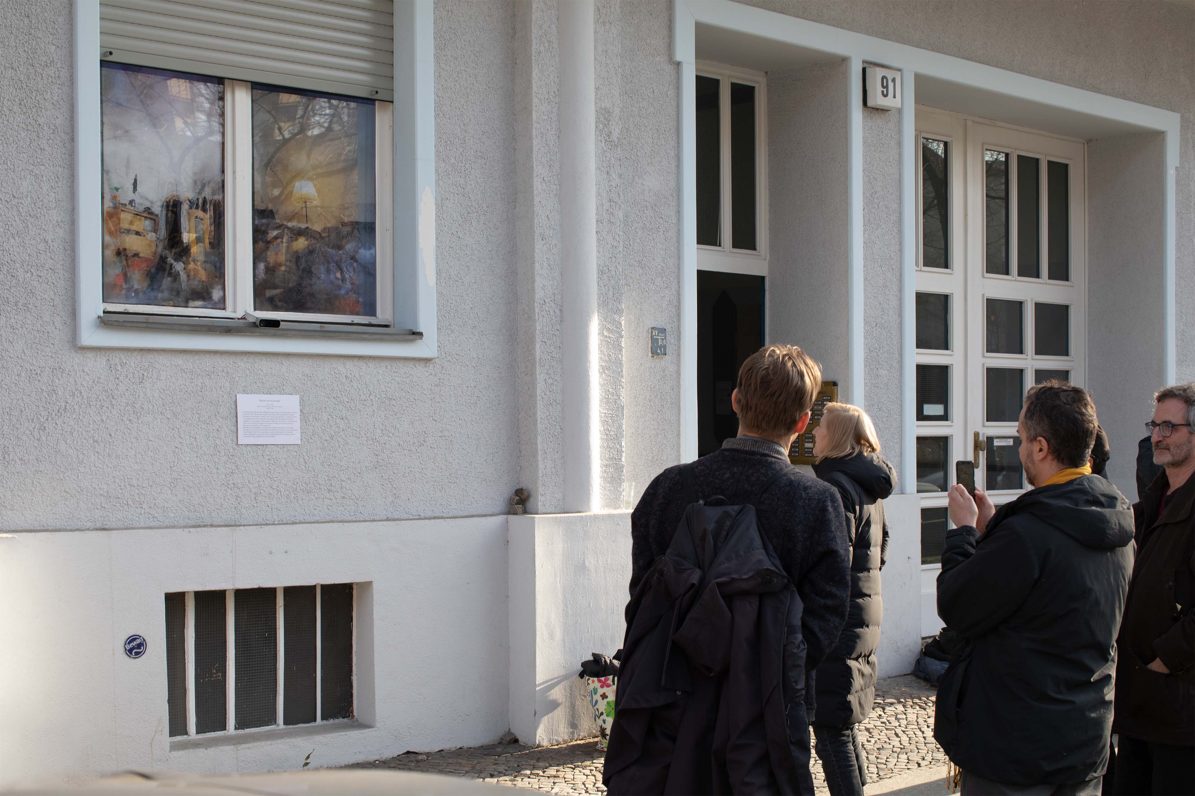 Nahweh: the Unreachable is a window that displays spaces that are accessible through the internet but inaccessible immediately in real life. It uses screenshots from Google Street View to generate a series of half-realistic but dreamy spaces, displayed towards the streets, inviting pedestrians to interact with them. A window to the reachable yet unreachable space.
